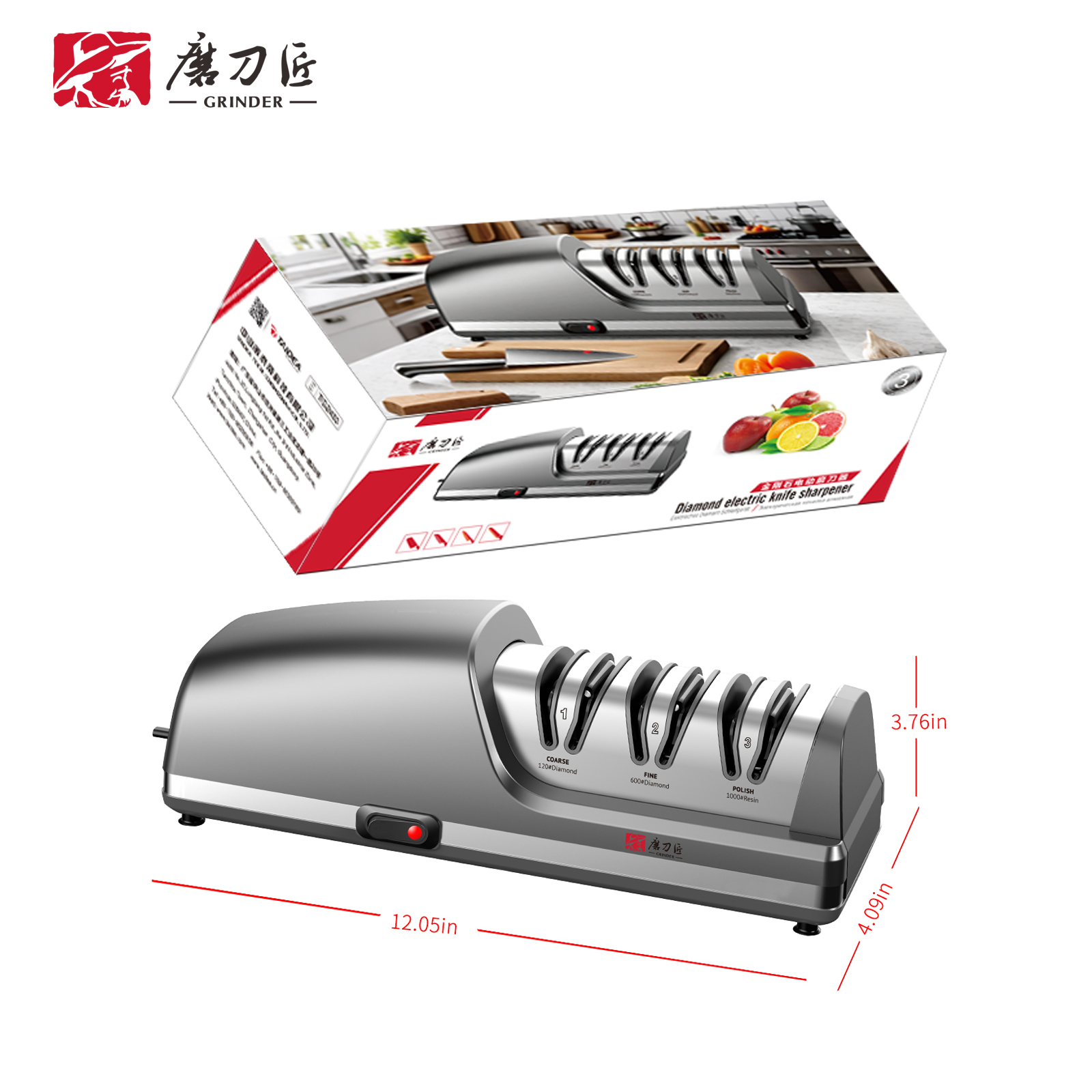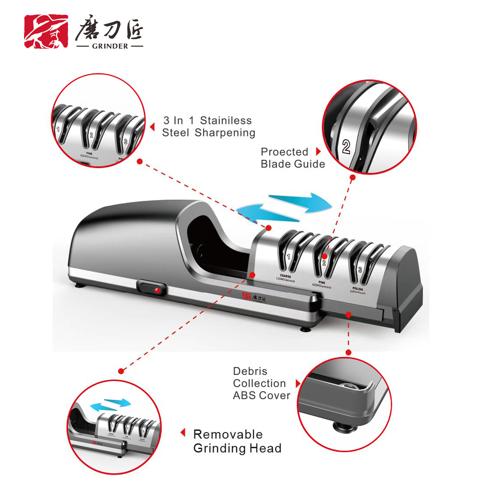 1. Three-section sharpener with functions of coarse grinding, fine grinding and polishing.